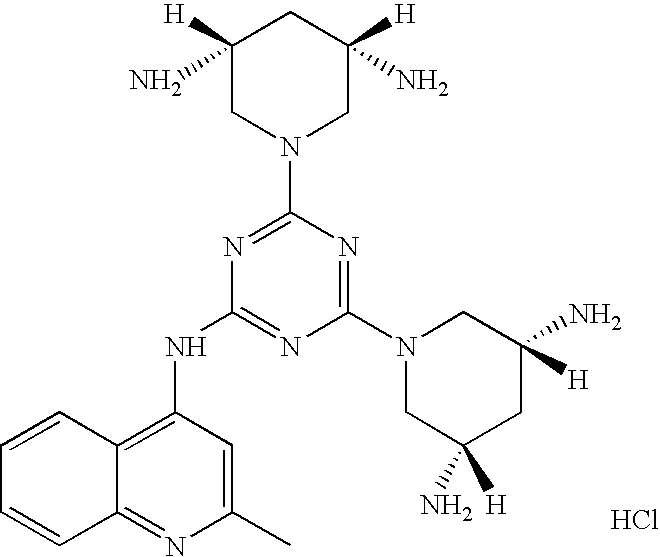 N-[4-(3-chloro-2-hydroxy-benzoylamino)-phenyl]-4,6-Bis-((3R,5S)-3,5-diamino-piperidin-1-yl)-[1,3,5]triazine-2-amine |