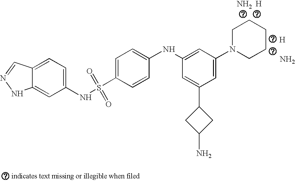 N-(4-{2-[4-(1H-indazol-6-ylsulfamoyl)-phenylcarbamoyl]-acetyl}-phenyl)-4,6-Bis-((3R,5S)-3,5-diamino-piperidin-1-yl)-[1,3,5]triazine-2-amine |