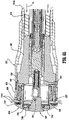 - FIG. 9 is an elevated side perspective view of the central and distal portions of the surgical stapling device shown in FIG. 1 with parts separated;