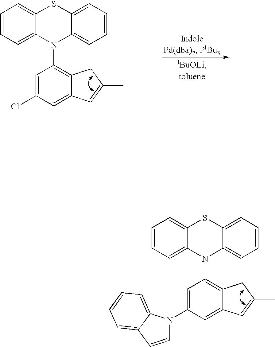 The term “pseudoaromatic heterocycle” refers to heterocyclic substituents that have similar properties and structures (nearly planar) to aromatic heterocyclic ligands, but are not by definition aromatic. The use of the term “psuedoaromatic heterocycle” or “pseudoaromatic heterocyclic” includes the following substituents: phenothiazin-10-yl, phenoxazin-10-yl, phenoselenazin-10-yl, phenotellurazin-10-yl, and hydrocarbyl substituted versions thereof including methylphenothiazin-10-yl, dimethylphenothiazin-10-yl, trimethylphenothiazin-10-yl, tetramethylphenothiazin-10-yl, pentamethylphenothiazin-10-yl, hexamethylphenothiazin-10-yl, heptamethylphenothiazin-10-yl, octamethylphenothiazin-10-yl, phenylphenothiazin-10-yl, diphenylphenothiazin-10-yl, phenylmethylphenothiazin-10-yl, diphenylmethylphenothiazin-10-yl and the like.