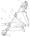 FIG. 5 shows how mounting assembly 23 and frame 24 allow for the skirt to be moved between folded position 26 and expanded position 28. As shown, arm 30 pivots about axis y-y, which is the axis of through- bores 56 and 59 and pivot bosses 58. This pivot axis is perpendicular to the axis x-x of through-bore 36 of assembly 23. Thus, in expanded position 28, arms 29 and 30, together with skirt 25, are in a plane that is substantially perpendicular to axis x-x. Arms 29 and 30 may then be moved out of detents 33 and pivoted through channel 55 to a position that is substantially parallel to axis x-x. In this substantially parallel position, skirt 25 may be folded up against shaft 20 and held in a folded position by strap 62.