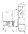 FIG. 5 displays the manner of assembly of a large battery module, as in FIG. 3, into a battery module enclosure;