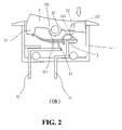 - a biasing member 221 such as a torsion spring is mounted to the insertion and includes two legs, one leg contacts against the underside of the switch member 2 and the other leg is connected to the push rod 22 .