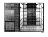 FIG. 7 is a perspective view that illustrates a Series L200 design for a lobby interior with a black granite back wall with rectangular side panel tiles of metal mesh.