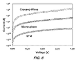- FIG. 6 shows I-V characteristics of OPE acquired using scanning tunneling microscopy (STM), microsphere, and crossed-wire test beds.