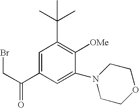 - KEAGPNJPLQQIJH-UHFFFAOYSA-N COC1=C(C(C)(C)C)C=C(C(=O)CBr)C=C1N1CCOCC1 Chemical compound COC1=C(C(C)(C)C)C=C(C(=O)CBr)C=C1N1CCOCC1 KEAGPNJPLQQIJH-UHFFFAOYSA-N 0.000 description 1