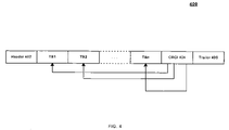 FIG. 5 illustrates a frame 500. Frame 500 may be representative of a FP frame such as frame 400 after removing the transport blocks that contain an error. As shown in FIG. 5, frame 500 may be similar in frame structure to frame 400, and includes a header 502, transport blocks TB1-m, CRCI field 504, and trailer 506. In frame 500, however, the transport blocks that contain an error may be removed, and therefore frame 500 may have less transport blocks m than transport blocks n of frame 400. CRCI field 504 may still retain, however, the n CRCI bits for each transport block TB1-n.