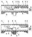 FIG. 6B shows a cross-section of a coring tool extended into a formation.