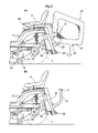 Furthermore, as shown in this document, through the rotation of a swing arm 106 that is operatively fixed to the mounting member 92 around an axis 126, the mounting member 92 rotates together with the swing arm 106 around the axis 126, putting the lever 88 into a posture in which it extends in a relatively straight horizontal direction or into a vertical posture.