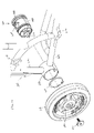 - FIG. 2 is an exploded perspective view of the brake assembly and a rear wheel of FIG. 1 .