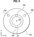 FIG. 9 is an X-Y plan view on the pupil of the objective lens, showing 0th order diffraction light and first order diffraction light which are produced in the Y axis direction from the grid pattern shown in FIG. 6 by casting the annular-looped illumination onto the grid pattern to be incident onto the pupil of the objective lens;