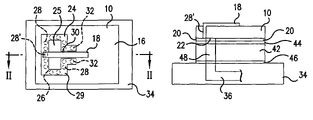 - Chip 10 may be attached to a substrate, such as an LTCC substrate 34 (e.g., FIGS. 1 , 2 ) having a waveguide 36 (e.g., FIG. 2 ) formed therein, by a layer of epoxy 38 (e.g., FIG. 2 ).