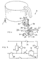 - the device also comprises a first sensor 7 of the temperature of at least a portion of the bowl and a timer 8 connected to control means 9 (for example formed by a circuit board or else electromechanically) which, in turn, are connected to the drive means 6 so as to move the basket 5 in response to the signals which the control means 9 receives from the temperature sensor 7 and from the timer 8 , between the lower position inside the bowl 3 and the upper position at least partially outside of it.