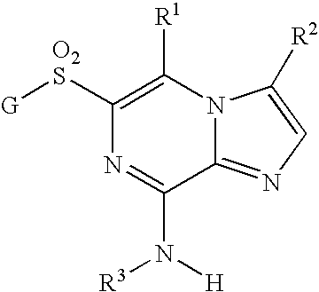 | US7186832B2 (en) * | 2003-02-20 | 2007-03-06 | Sugen Inc. | Use of 8-amino-aryl-substituted imidazopyrazines as kinase inhibitors |