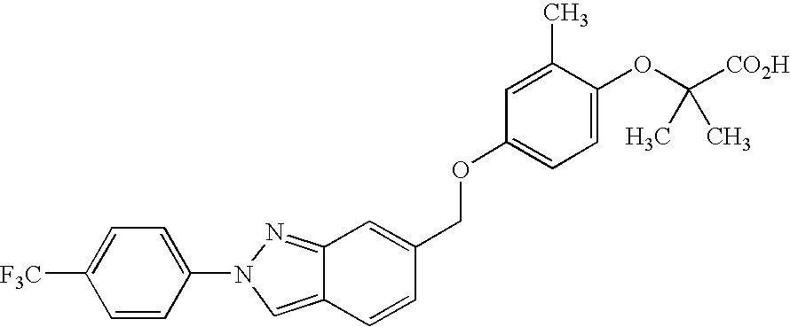 (+/−)-2-Methyl-2-(4-{phenyl-[1-(4-trifluoromethylphenyl)-1H-indazol-4-yl]methoxy}phenoxy)propionic Acid