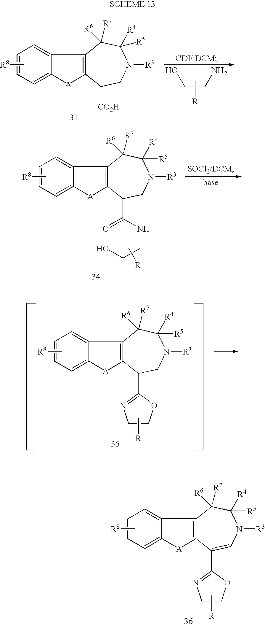 3-(2-bromo-5-methoxybenzoyl)-1,2,3,6-tetrahydroazepino[4,5-b]indole-5-carboxylic acid ethyl ester; MS (ES): 469 (MH+);