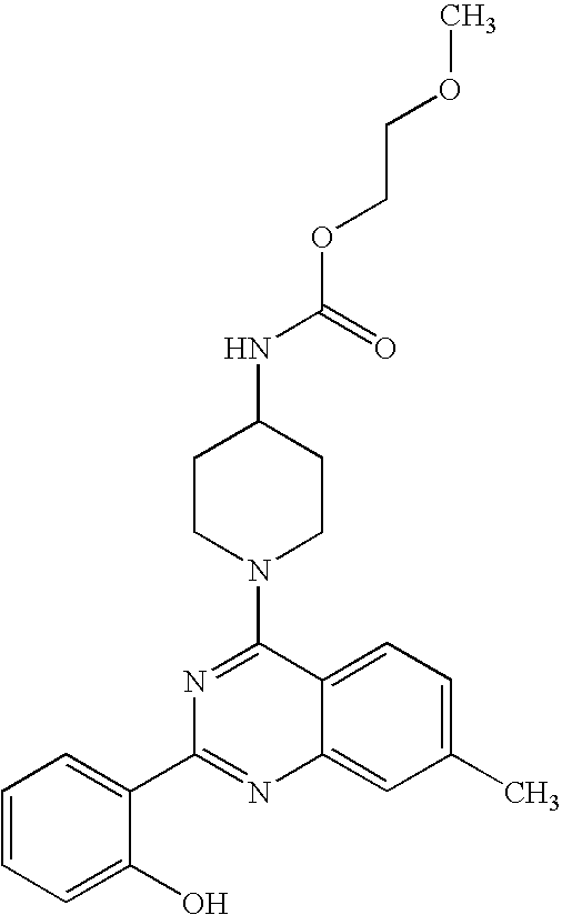 - 6) Upon removing the bath, the cells are loaded with 80 μL of the DiSBAC2(3) solution, after which test compound, dissolved in DMSO, is added to achieve the desired test concentration to each well from the drug addition plate and mixed thoroughly. The volume in the well should be roughly 121 μL. The cells are then incubated for 20-30 minutes.