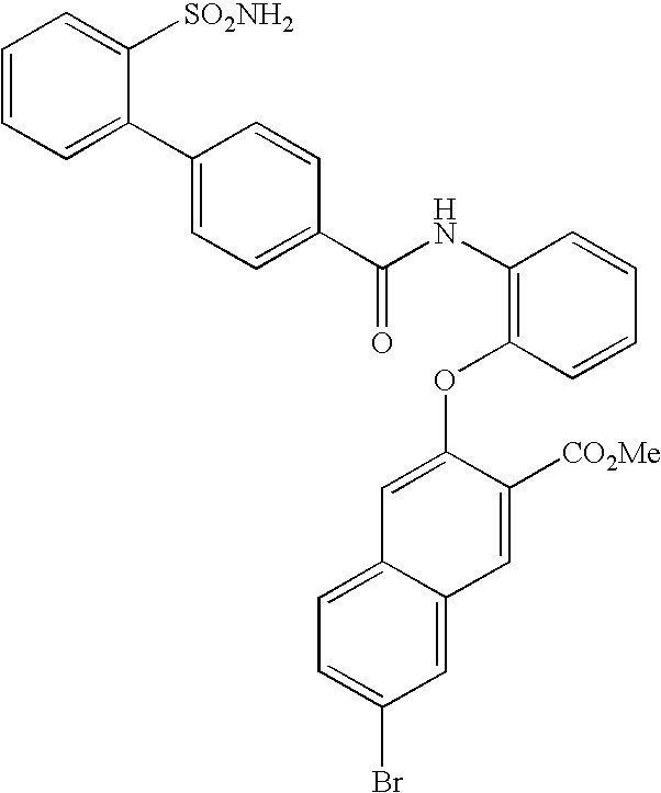 - AKTHLSKCYBESTM-UHFFFAOYSA-N NS(=O)(=O)C1=CC=CC=C1C1=CC=C(C(=O)NC2=C(OC3=CC4=CC=CC=C4C=C3C(=O)O)C=CC=C2)C=C1 Chemical compound NS(=O)(=O)C1=CC=CC=C1C1=CC=C(C(=O)NC2=C(OC3=CC4=CC=CC=C4C=C3C(=O)O)C=CC=C2)C=C1 AKTHLSKCYBESTM-UHFFFAOYSA-N 0.000 description 2