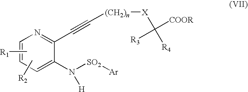 - b) reacting, according to the Sonogashira reaction (see, for example: Tet. Lett., 1975, 4467), the compound of formula III with an acetylenic derivative of formula