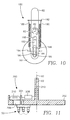 FIG. 9 is a schematic plan view illustrating the two positions of a pivoting, arc-shaped dual-position magnetron.