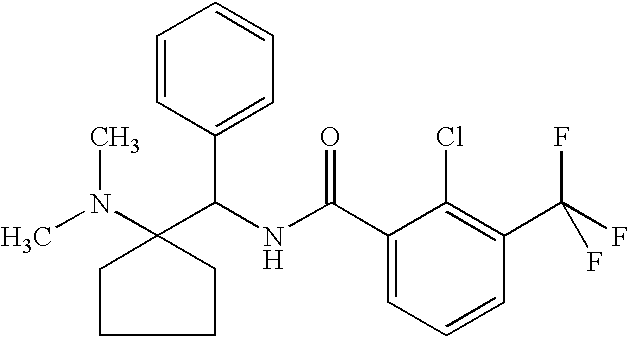 (±)-2-chloro-N-[2- (hexahydro-1H-azepin-1-yl)- 2-methyl-1-phenylpropyl]-3- (trifluoromethyl)benzamide |