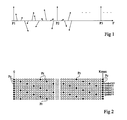 - scattered pilots Pr there are, in each symbol, so-called “scattered pilots” Pr, which are arranged every 12 carriers, and shifted by three positions between two successive symbols. Thus, every four symbols, the same arrangement of scattered pilots Pr can be found.