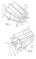 FIG. 8 is a sectional view along line 8-8 of FIG. 1 illustrating the slight skew of the vanes as they recede back from the smaller front end of the nozzle to the larger rear end;