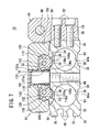 FIG. 9 is an enlarged cross sectional view showing a vicinity of a first guide surface and guide block of the cylinder body of FIG. 7;