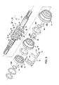 FIG. 4 is an exploded view of a portion of the hub assembly showing elements of the shift mechanism including a hub axle, a pawl control member, a clutch ring, a shifting key guide, a positioner, a spring washer, a pawl support, a shift sleeve, a pawl control washer, a holding plate, an actuator plate, a first spacer, a coupling plate, a cable bracket, a rotatable cable bracket, a fixed cable bracket, a washer, a second spacer and a biasing spring (among other elements) in accordance with the first embodiment of the present invention;
