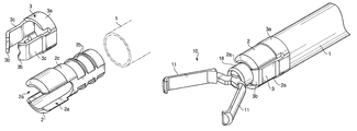 - a clearance between the two claw portions 3 b are smaller than the inner diameter of the fastening ring 18 of the clip assembly 10 ; therefore, as shown in FIG. 7 , the proximal portion of the clip assembly 10 is resiliently and steadily nipped by the claw portions 3 b even after the fastening ring 18 passed through the claw portions 3 b of the blade spring piece 3 .