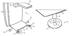 FIG. 4 illustrates a floor plate of a mammography system with two user control devices, which are supported pivotably and radially retractably and extendable below the floor plate.