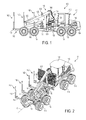 The forwarder 101 in the illustrated embodiment includes a hydrostatic pump (not shown) that is connected to the engine and that provides hydraulic power to various systems, but other types of drive systems may be used. For example, a drive system using electrical or mechanical power may be used to operate the driven wheels 114. In the illustrated embodiment, the drive system of the forwarder 101 includes a hydrostatic motor (not shown) that is connected to a transmission or another type of gear arrangement (not shown) having drivelines mechanically propelling each of the driven wheels 114. Each driven wheel 114 is powered by an axle assembly 115, which may include a planetary gear arrangement. Hydrostatic actuators are also used to actuate a boom or crane 118. The crane 118 in the illustrated embodiment includes three movable arms 120 pivotally interconnected at their respective ends and arranged to pivot in relation to one another by use of one or more hydraulic cylinders 122.