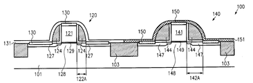 Similarly, the second transistor element 140 may comprise a gate electrode structure 141 comprised of highly doped polysilicon, which is formed on a gate insulation layer 149. A sidewall spacer structure 142 is formed at the sidewalls of the gate electrode structure 141, wherein the spacer structure 142 may comprise at least an inner spacer element 144 formed on a corresponding etch stop layer 143 and an outer spacer element 146 formed on a respective etch stop layer 145. With respect to the material composition of the etch stop layers 143, 145 and the spacer elements 144, 146, the same criteria apply as explained above for the spacer element 124 and the etch stop layer 123 of the first transistor element 120. Moreover, a width 142 a of the spacer structure 142, i.e., its lateral extension at the foot of the spacer structure 142, differs from the corresponding width 122 a, since the lateral distance of a metal silicide region to be formed in the second transistor element 140 may require a different value for enhanced performance of the transistor element 140, as is previously explained with respect to the different performance of NMOS and PMOS transistors in view of metal silicide.