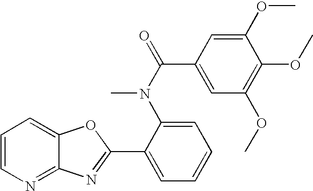 - AOMQQQZATOLTKI-UHFFFAOYSA-N COC1=CC(C(=O)NC2=CC=CC=C2C2=NC3=NC=CC=C3O2)=CC(OC)=C1OC Chemical compound COC1=CC(C(=O)NC2=CC=CC=C2C2=NC3=NC=CC=C3O2)=CC(OC)=C1OC AOMQQQZATOLTKI-UHFFFAOYSA-N 0.000 description 3