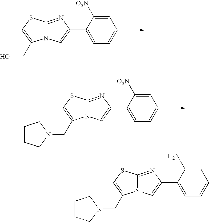 - PUKKVDUYQFGMEV-UHFFFAOYSA-N CCOC(c1c[s]c2nc(-c(cccc3)c3NC(c3nc4ccccc4nc3)=O)c[n]12)=O Chemical compound CCOC(c1c[s]c2nc(-c(cccc3)c3NC(c3nc4ccccc4nc3)=O)c[n]12)=O PUKKVDUYQFGMEV-UHFFFAOYSA-N 0.000 description 2