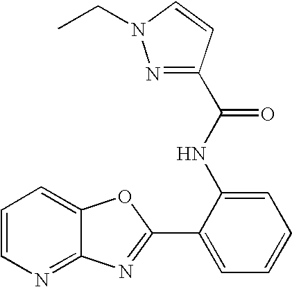 - PFXQCZZAMRFQIH-UHFFFAOYSA-N O=C(NC1=CC=CC=C1C1=NC2=C(N=CC=C2)O1)C1=CC=CC=C1 Chemical compound O=C(NC1=CC=CC=C1C1=NC2=C(N=CC=C2)O1)C1=CC=CC=C1 PFXQCZZAMRFQIH-UHFFFAOYSA-N 0.000 description 3
