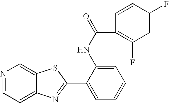 - PIDZSNYQOJHQIG-UHFFFAOYSA-N CC(C)(C)C1=CC=C(C(=O)NC2=CC(C3=NC4=CC=NC=C4S3)=CC=C2)C=C1 Chemical compound CC(C)(C)C1=CC=C(C(=O)NC2=CC(C3=NC4=CC=NC=C4S3)=CC=C2)C=C1 PIDZSNYQOJHQIG-UHFFFAOYSA-N 0.000 description 2