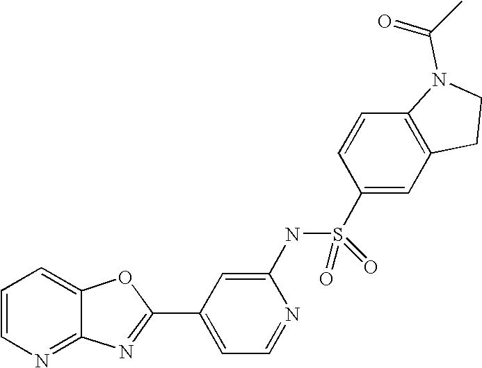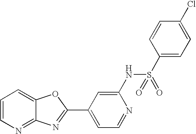 - UXESIHQBQBWDSI-UHFFFAOYSA-N CC1=NN(C)C(Cl)=C1S(=O)(=O)NC1=CC(C2=NC3=NC=CC=C3O2)=CC=N1 Chemical compound CC1=NN(C)C(Cl)=C1S(=O)(=O)NC1=CC(C2=NC3=NC=CC=C3O2)=CC=N1 UXESIHQBQBWDSI-UHFFFAOYSA-N 0.000 description 2