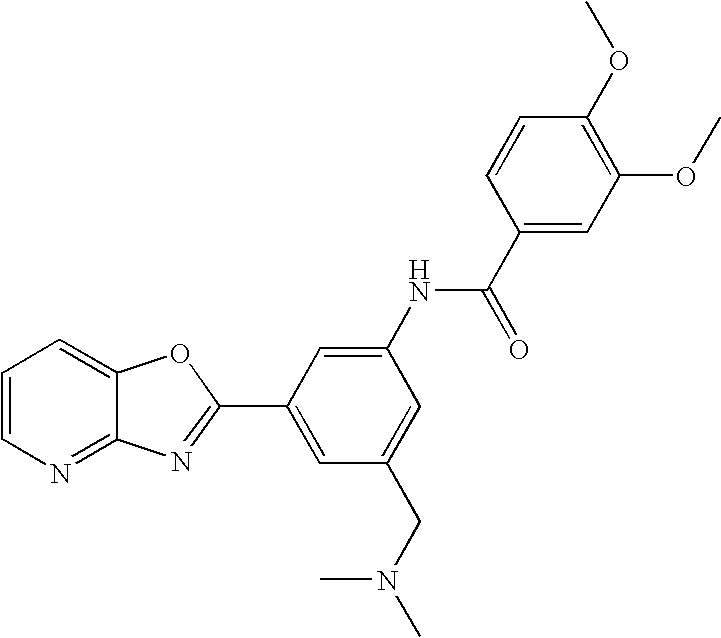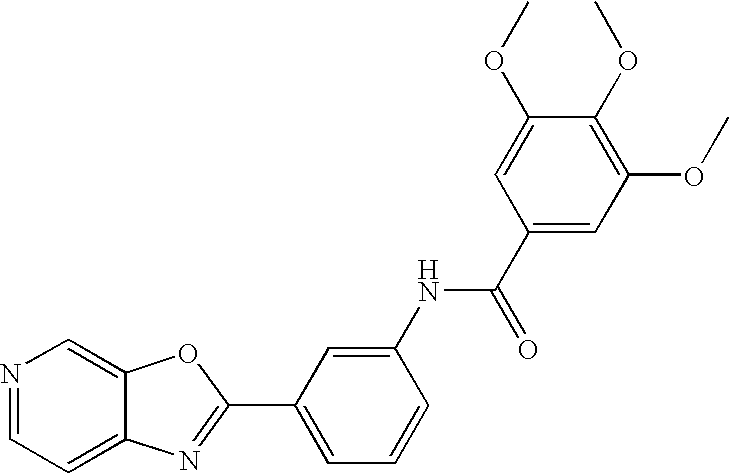 - KOFVOWWCBHVBTH-UHFFFAOYSA-N COC1=C(OC)C=C(C(=O)NC2=CC(C3=NC4=NC=CC=C4O3)=CC=C2)C=C1 Chemical compound COC1=C(OC)C=C(C(=O)NC2=CC(C3=NC4=NC=CC=C4O3)=CC=C2)C=C1 KOFVOWWCBHVBTH-UHFFFAOYSA-N 0.000 description 2