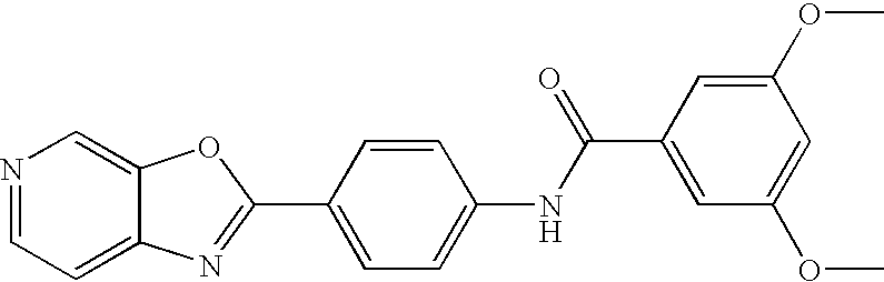 - RTTWUEACFUMWSK-UHFFFAOYSA-N COC1=C(OC)C=C(NC(=O)C2=CC(C3=NC4=NC=CC=C4O3)=CC=C2)C=C1 Chemical compound COC1=C(OC)C=C(NC(=O)C2=CC(C3=NC4=NC=CC=C4O3)=CC=C2)C=C1 RTTWUEACFUMWSK-UHFFFAOYSA-N 0.000 description 2