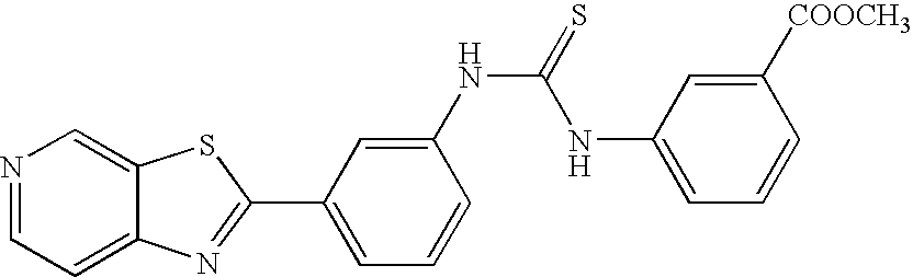 - OJCCBSZGNCSGRX-UHFFFAOYSA-N COC(=O)C1=CC(NC(=S)NC2=CC(C3=NC4=CC=NC=C4S3)=CC=C2)=CC=C1 Chemical compound COC(=O)C1=CC(NC(=S)NC2=CC(C3=NC4=CC=NC=C4S3)=CC=C2)=CC=C1 OJCCBSZGNCSGRX-UHFFFAOYSA-N 0.000 description 2