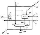 - the multiplexer 3 . 1 inputs comprise Pi (Partial product in) 3 . 2 and Full Adder out 3 . 4 .