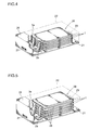 - the lithium-ion battery 1 is often used in the form of a battery stack where a plurality of single cell stacks thus assembled are connected with one another, and there are no particular limitations to the way the terminals are protruded, the shape and material of the terminals, the whole size of the laminate battery.