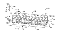 - the terminal block 100 is oriented with respect to a longitudinal axis 190 , a lateral axis 192 , and a vertical or elevational axis 194 .