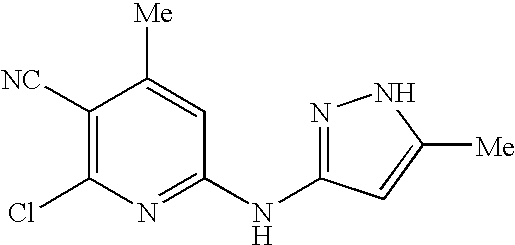 - 2-chloro-6-(5-ethyl-1H-pyrazol-3-ylamino)-4-methylnicotinonitrile,