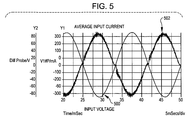 - FIG. 5 is signal diagram showing the phase relationship between the input voltage and average input current across the input capacitors in the drive circuits of FIGS. 2A and 3A .