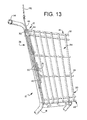FIG. 13 is a side view of a portion of a shopping cart assembly with an alternate embodiment of the child seat assembly in the collapsed, non-use configuration;