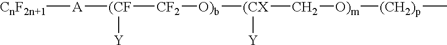 - the fluorinated material is a material containing perfluoroalkylene ether groups of the structure: