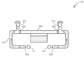 Therefore, in the present invention, the speaker 30 can generate sound by the speaker core 330 according to input signals. On the other hand, the speaker 30 can also propagate light generated by the light generators L1˜Ln with the housing 310 formed as the speaker chamber of the speaker 30, so that the speaker 30 can have a function of emitting light.