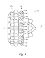 Each crest transition surface 124 a, b is bounded by crest lateral side 132 a, b, a first side or boundary 125 a, b, and a second side or boundary 126 a, b, respectively. For instance, crest transition surface 124 a is bordered by crest lateral side 132 a, first side 125 a extending generally perpendicularly from crest lateral side 132 a, and second side 126 a extending from crest end 122 a towards and intersecting first side 125 a. Likewise, crest transition surface 124 b is bordered by crest lateral side 132 b, first side 125 b extending generally perpendicularly from crest lateral side 132 ba, and second side 126 b extending from crest end 122 b towards and intersecting first side 125 b. In this embodiment, crest transition surfaces 124 a, b do not extend completely to base portion 101, but rather, flanking surfaces 123 are provided at least partially between crest transition surfaces 124 a, b and base portion 101.